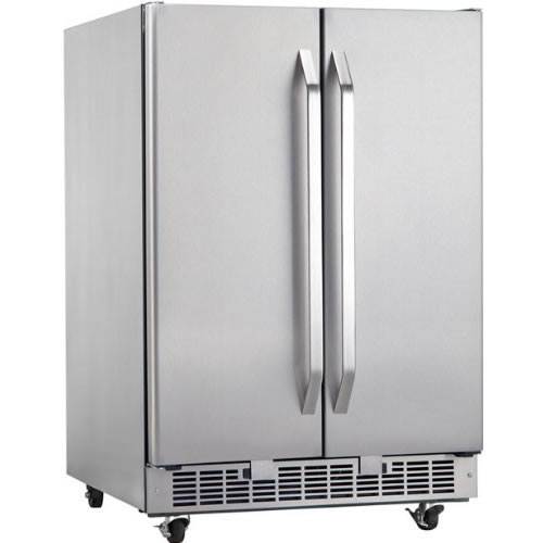 Store your drinks in style when you put them in the Danby 5.0 Cubic Foot Outdoor Built-In Beverage Center (DOBC7070SSST). This large stainless steel beverage center is great for when you're hosting BBQs, picnics, pool parties, and much more. With 5.3 cubic feet of space, this beverage center can hold up to 60 12-ounce beverage cans and 27 standard size bottles of wine, which is great for throwing parties or hosting outdoor events. A built-in fan-forced cooling system provides this beverage center with consistent internal temperatures, which is perfect for outdoor cooling systems that are outside in the sun all day. White LED interior track lighting helps to illuminate the inside of the beverage center instead of using incandescent bulbs, which can adversely affect the beverages and wines stored inside the cooler. A built-in digital thermostat makes it easy for you to set the cooling temperature, which can be anywhere between 39 and 64 degrees F. This is great for storing both red and white wines, as well as canned beverages, so they can stay at their cooled optimal temperature. Tempered glass shelves adds to the elegance of the beverage center, while the stainless steel cabinet and French doors give the entire unit a modern feel. Perfect for outdoor events and parties, this beverage center will be the hit of the party among your guests. Internal Temperature: Thanks to the built-in digital thermostat, the temperature range can be selected anywhere between 39 and 64 degrees F Modern Look: A stainless steel cabinet and French doors add to the overall modern look of this beverage center Storage Capacity: Able to hold up to 60 12-ounce beverage cans and 27 standard size bottles of wine, this beverage cooler can chill and store a large amount of drinks
