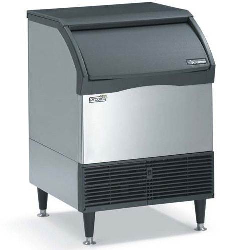 The Scotsman Prodigy CU2026SA-1A self-contained, air-cooled ice machine produces small cubed ice. It adapts to numerous undercounter applications and will fit under any 40 counter. A slide-away access door provides convenient and easy access to ice. Prodigy undercounter cubers use significantly less energy and water than other cube ice machines, exceeding California and Federal energy efficiency regulations. Its Auto-Alert indicator lights will constantly communicate operating status and will clearly signal your staff when it's time to descale, sanitize, and other routine maintance functions. Meanwhile the WaterSense adaptive purge control reduces build up making these cleanings less frequent. When it is time for preventative maintenance, it's simpler than ever as The Scotsman Prodigy's easily-removed door, top panel and storage bin allows for clear access to all internal components. Should any thing go awry, a diagnostic code display removes any guess work meaning you'll get the right fix the first time. Installation note: Allow 6 minimum space at left side and back for ventilation and utility connections.