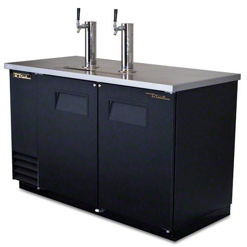 .productVid { float: right; margin-left: 20px; margin-bottom: 20px; } Let your customers enjoy a refreshing cold draft beer with the True 2 Keg Direct Draw Beer Dispenser (TDD-2). This unit holds two (2) half-sized kegs and features two (2) direct draw beer taps for easy serving. This dispenser has two (2) doors with recessed handles and magnetic door gaskets for easy opening and closing, so you won't have to worry about the door being shut all the way and letting the cold air out. The exterior is made of a heavy-duty, durable laminated black vinyl to add protection to the keg. The interior includes a 300 series stainless steel floor with a 1/2 lip and galvanized steel walls. This helps to keep the beer further insulated and cold while also adding an extra layer of protection. The forced air refrigeration system keeps your beer cold between 33-38 degrees F, while the air vents on the sides of the refrigeration system allow for maximized air flow through the condenser, so you won't have to worry about your system overheating and breaking down. This unit is perfect for commercial use and is NSF approved for commercial applications. Here's What's Included: Ships with the following: two (2) beer towers, drip tray, two (2) faucets, and two (2) faucet handles (kegs not included) Cold Beer: The built-in magnetic gaskets keep the doors shut, allowing the air to stay sealed inside around the kegs Beer Column: Cold air is filtered into the beer column to prevent too much foam from being dispensed Commercially-Approved: The NSF approval allows this unit to be used for commercial applications Please Note: True beer dispensers do NOT include the following hardware needed to connect your keg - CO2 tank, CO2 line, CO2 regulator, beer line, keg coupler.