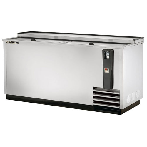 For top-of-the-line underbar refrigeration, look no further than the True 65 Inch Stainless Steel Deep Well Horizontal Bottle Cooler (TD-65-24-S). This cooler is top-loading with two (2) sliding doors, offering convenient reach-in bottle retrieval. Meant to perform in the busiest of commercial environments, this unit has a design that delivers both dependability and convenience. Thorough Cooling: Forced-air cooling chills the tops of the bottles with a continuous airflow, while an extra large evaporator maintains temperatures between 33°F to 38°F throughout the cooler Quality Components: Constructed from quality materials, the countertop and cabinet is made of sturdy stainless steel, while the interior is lined with heavy-duty galvanized steel Ecomate Insulation: The interior is insulated with Ecomate, which is a high-density insulation that is proven to neither harm the ozone nor contribute to global warming Bin Dividers: Four (4) PVC coated adjustable bin dividers allow for quick and easy organization of cooler contents Integrated Bottle Opener: Maximizing convenience, an integrated bottle opener and bottle cap catcher is featured on the front of the unit, allowing you to open bottles immediately after retrieval