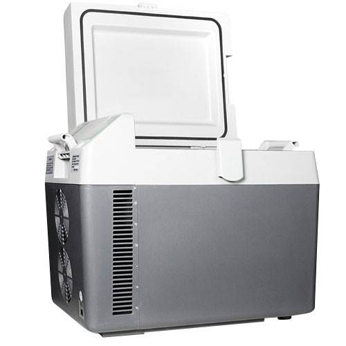 The Summit (SPRF26) 26 liter Portable Cooler is ideal for on-the-go activities, especially road trips, as it is designed to plug into car and/or boat lighter sockets! It can be set to operate as a refrigerator or a freezer, great for keeping food and drinks cold on trips, or for keeping ice cream or frozen treats from melting. A digital thermostat with an external LED thermometer display allows for easy temperature control without having to open the lid. The hammered aluminum interior can hold up to 26 liters or 18 standard glass bottles. This compressor operated unit can be plugged into the 12V DC lighter socket in any vehicle or boat, as well as 24V power sources. Also included is a power adapter that enables the cooler to be plugged into any 110V wall outlet. Carrying and loading the cooler is simple thanks to the study side handles and a lightweight design. An optional transport trolley is also available for purchase. Car Socket Compatible:Primarily designed for use in cars, boats or other vehicles, this unit can be plugged in to any 12V or 24V powers source, or 110V wall outlets using the included adapter Digital Thermostat: Temperature control is easy with electronic controls and an external digital readout, allowing for temperature adjustment without opening the lid Multi-Purpose Unit:With a generous 6 L/0.9 cu. ft carrying capacity, this unit can be used for personal or medical refrigeration purposes