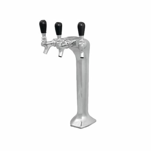 Dispense your beers in style using the UBC Triple Faucet MILANO Beer Tower (MLN3). This cobra style beer tower has a clean chrome finish and includes three (3) domestic faucets and three (3) beer lines. The tower is glycol cooled, so you can be sure your beer is kept cold from the keg to the glass. Please Note: Although pictured, tap handles are not included with this tower.